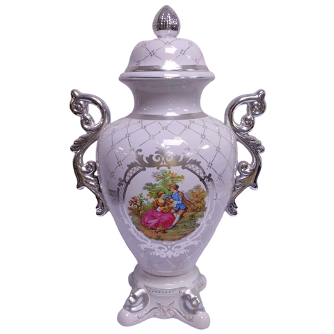 Barattolo decorativo squisito di stoccaggio in ceramica con finiture in argento con motivo artistico per la decorazione della casa