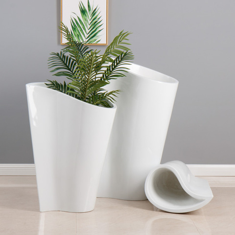 2025 홈 장식 키가 큰 디자인 유리 섬유 파종기 대형 야외 흰색 큰 화분