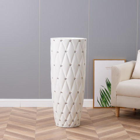 Diskon besar berlian berlapis Resin putih vas bunga kering vas lantai untuk Hotel lobi dan aula penggunaan dekoratif